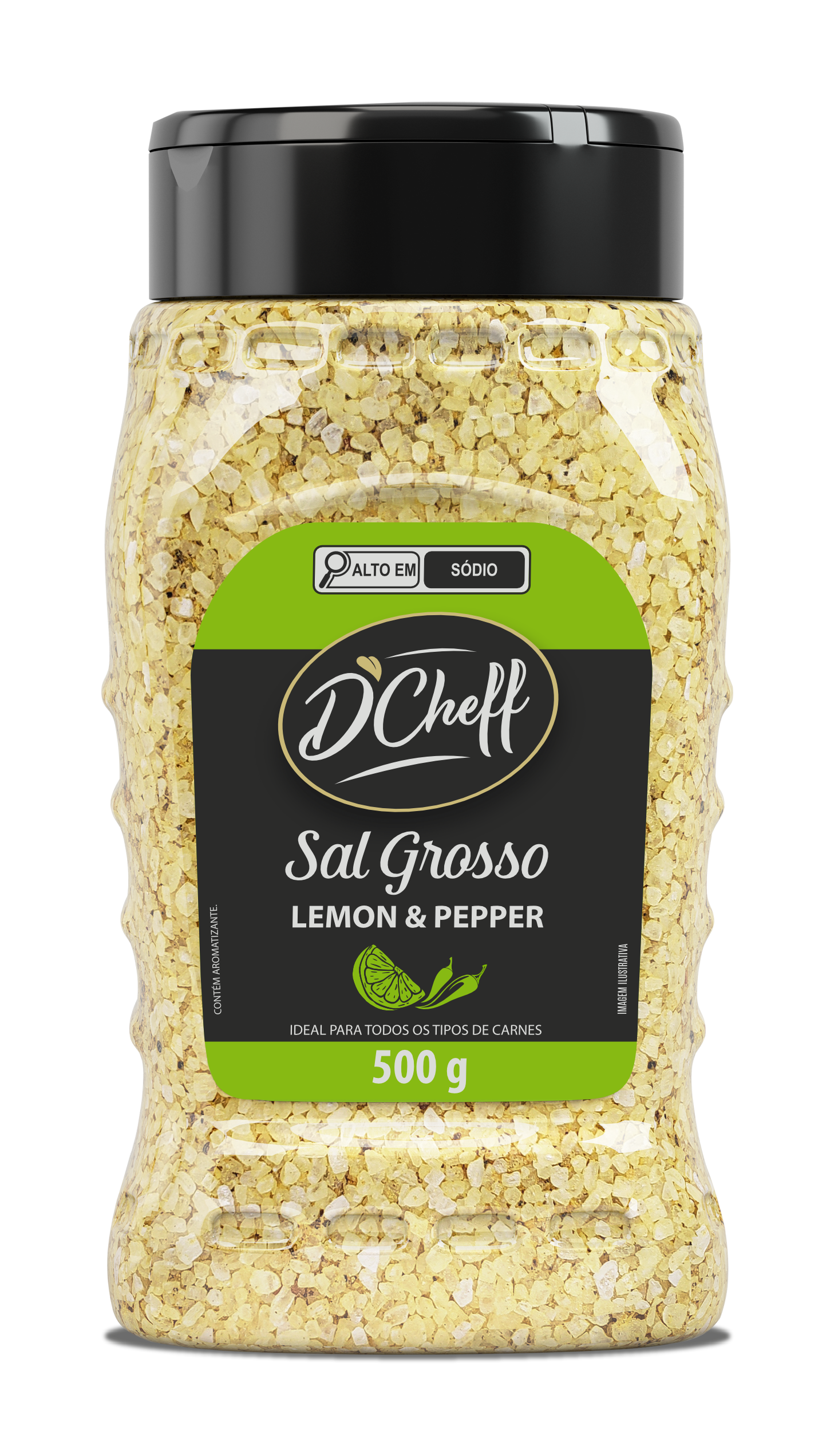 Quando o assunto é churrasco, não podemos nos esquecer do sal grosso. O Sal Grosso Lemon & Pepper D'Cheff é muito aromático e dá um toque especial e diferente ao seu assado. Recomendado principalmente no preparo de peixes e aves.